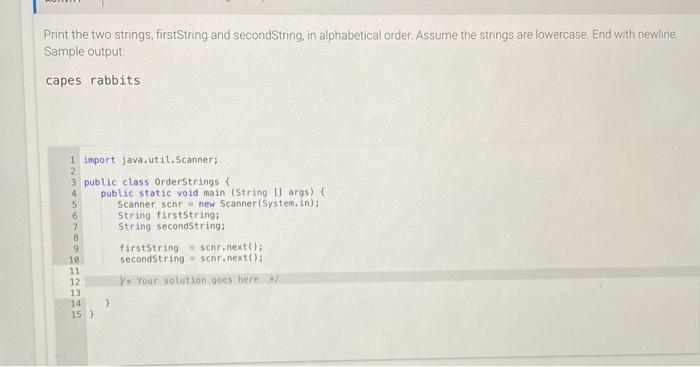 Shhhh... Listen! Do You Hear The Sound Of How To Print String In Alphabetical Order In Java?. In this tutorial, we learned how to sort a single string and array of strings in alphabetical order using java language. After found just copy first string to temp of same type and place second string to first then place temp to second. First, we will take the user input for how many strings to enter? In this method string length is found using length() method. For example, consider the following strings.